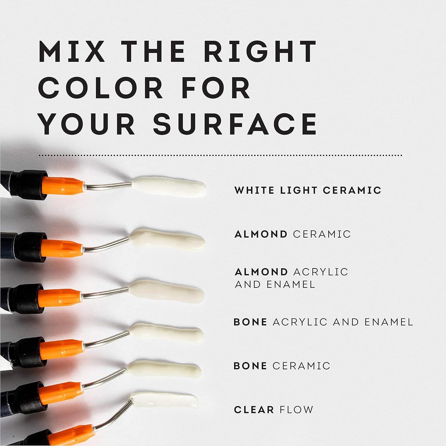 If you’re wondering about the blue light unit, it basically uses blue light to ‘cure’ the filling. The photons in the blue light have a specific wavelength which causes a chemical reaction in certain substances - the filling in this kit being one of them. Shining the blue light on it turns the filling completely solid to make it blend in with the rest of your surface.